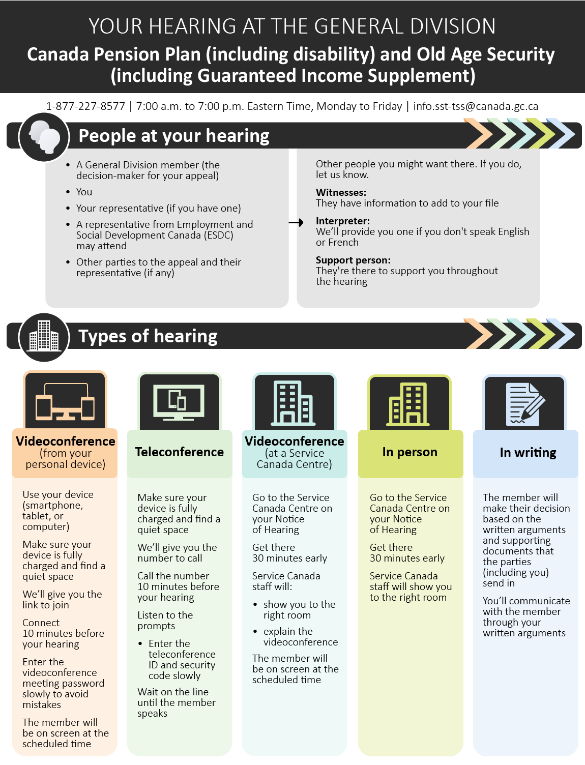 Your hearing at the General Division – Canada Pension Plan (including disability), Old Age Security (including Guaranteed Income Supplement) and Canada Disability Benefit