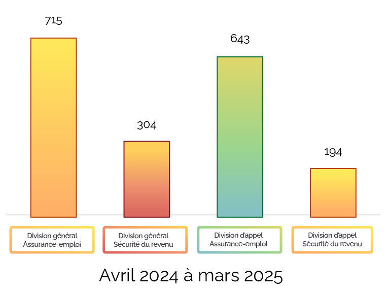 Ces statistiques montrent le nombre de décisions finales que nous avons publiées pour chacune de nos divisions.